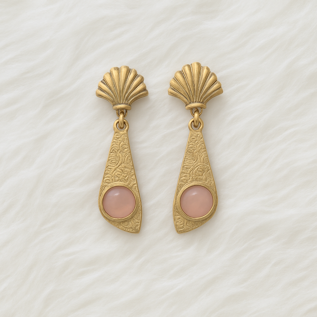 Crafted with vintage allure, Amara Drops feature a shell-inspired stud, intricately patterned gold-toned drop frames, and rich stones that catch the light with every movement. Amara is all about understated luxury making it the perfect pair to elevate your everyday look or add a regal touch to eveningwear.