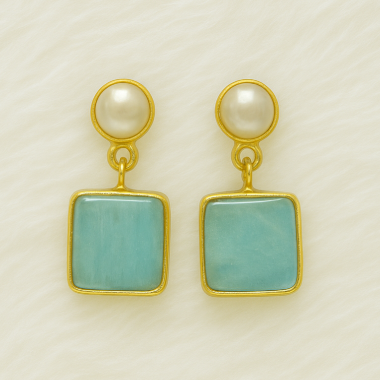 Graceful and radiant, the Aria Drops bring a touch of lyrical elegance to your jewelry collection. Designed with a luminous pearl stud and a bold, square-cut stone in rich, vibrant tones, each pair strikes a perfect balance between modern minimalism and timeless charm. Whether you choose a soft aqua or a deep crimson, the Aria Drops are made to elevate your everyday and occasion looks with ease.